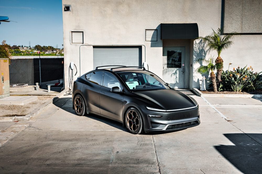Stealth Gray Tesla Model Y Juniper on 21-Inch UP Forged UP-03 Wheels in Satin Black