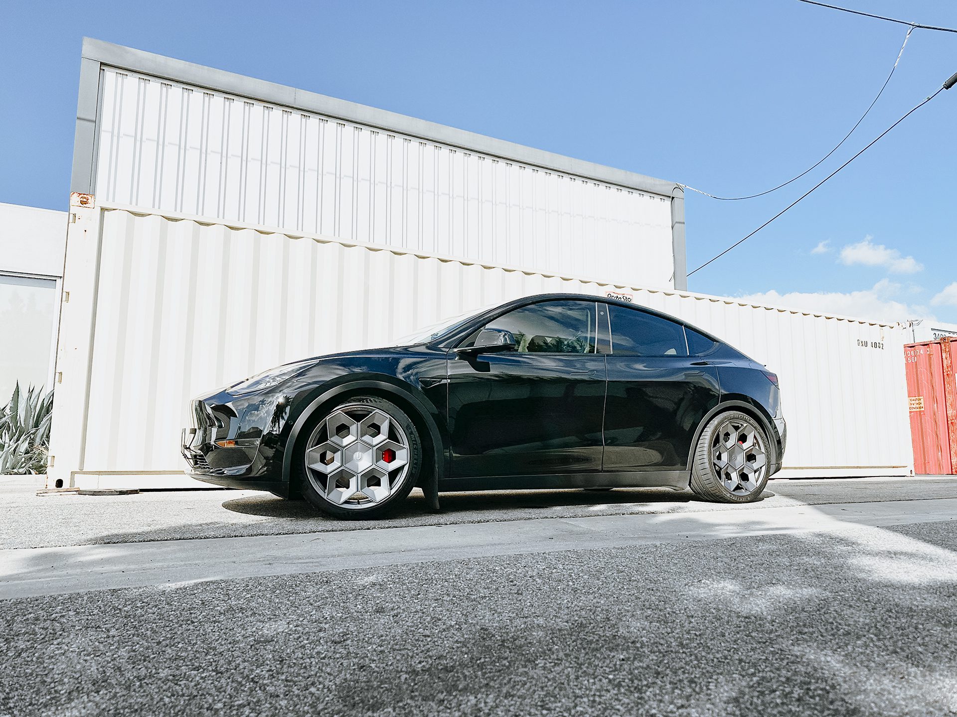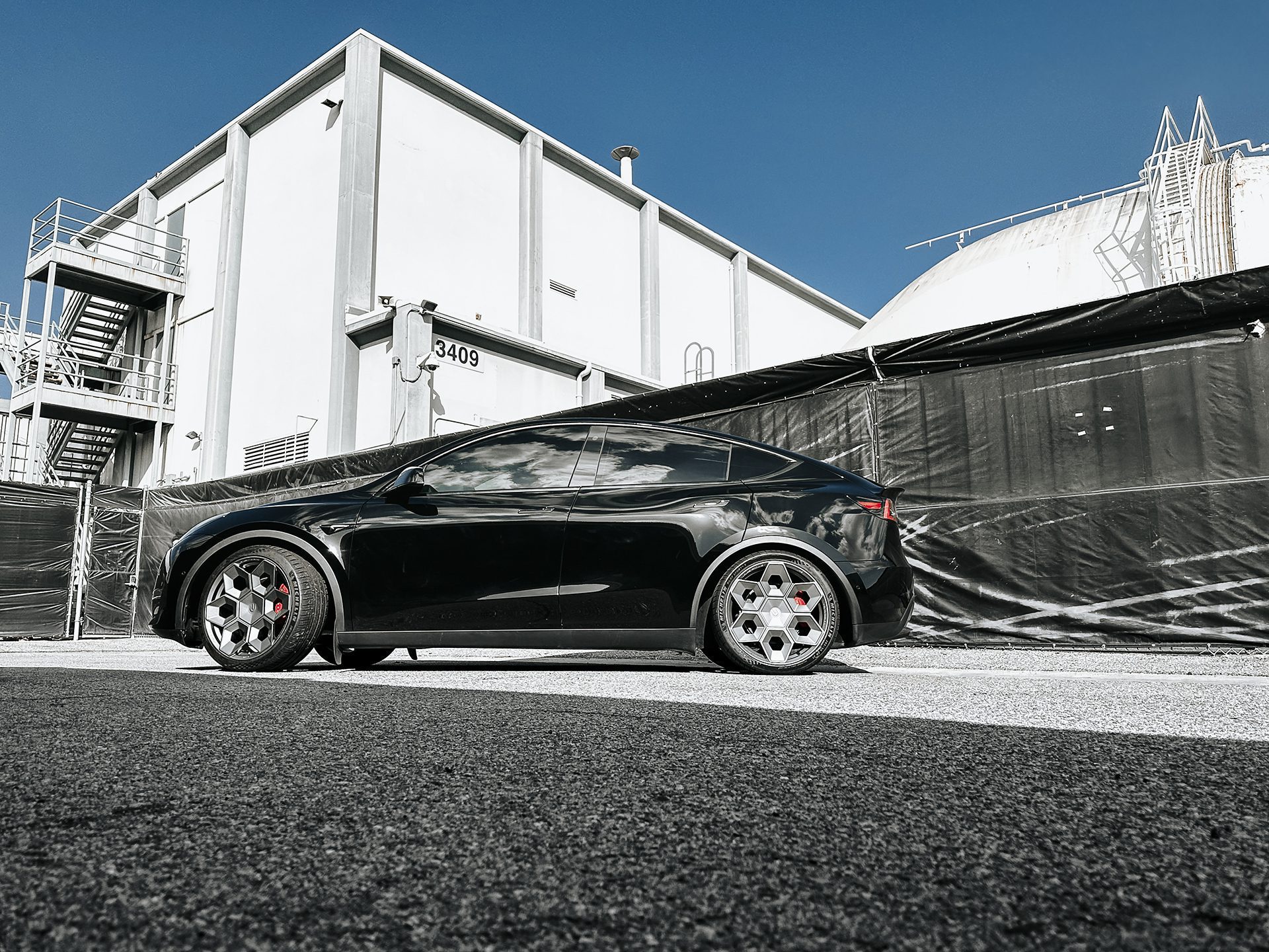 Black Tesla Model Y – UP CYBRHEX Forged Wheels in Satin Titanium