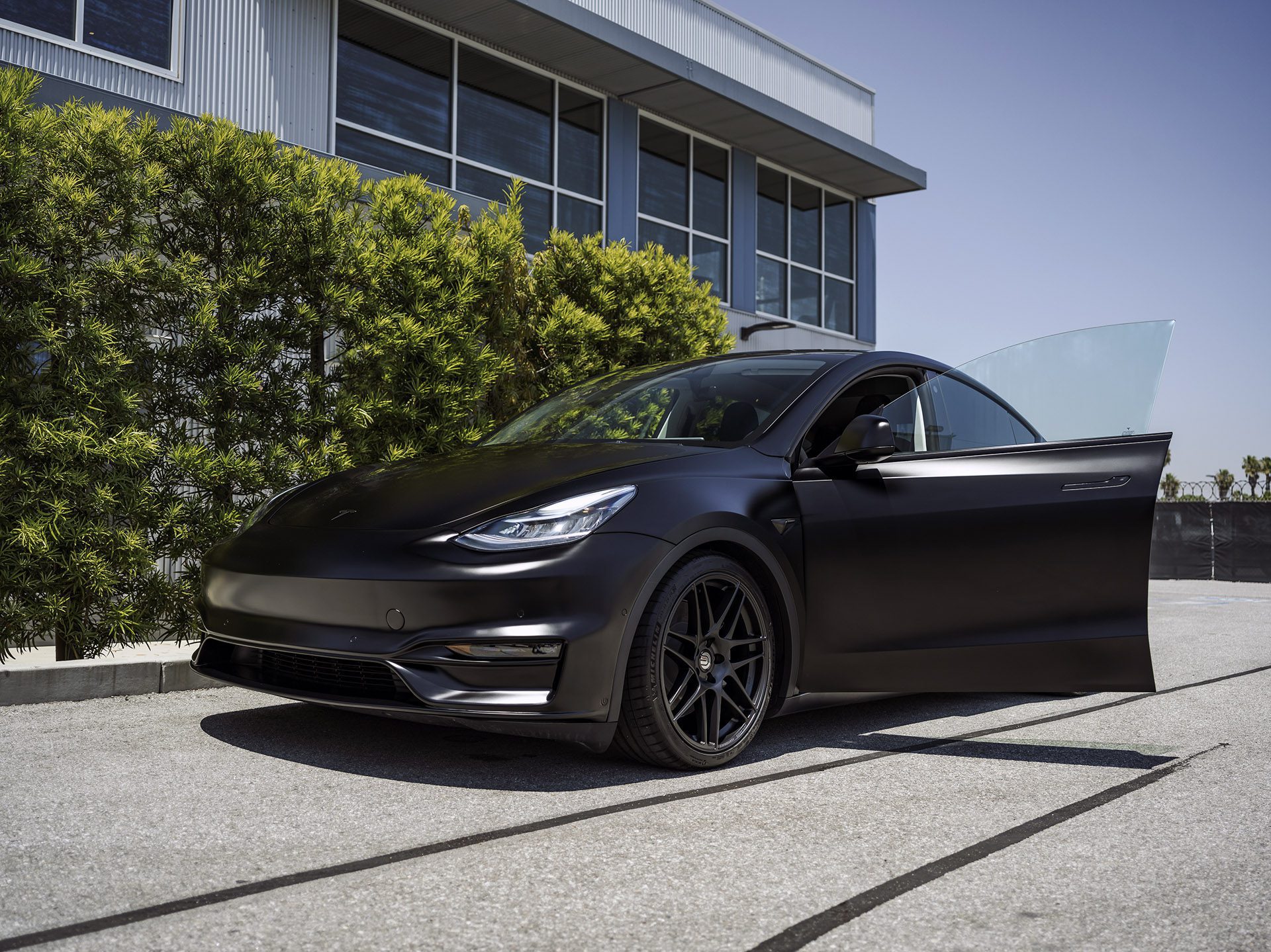 Matte Black Tesla Model Y - UP x BBS Flugplatz Wheels