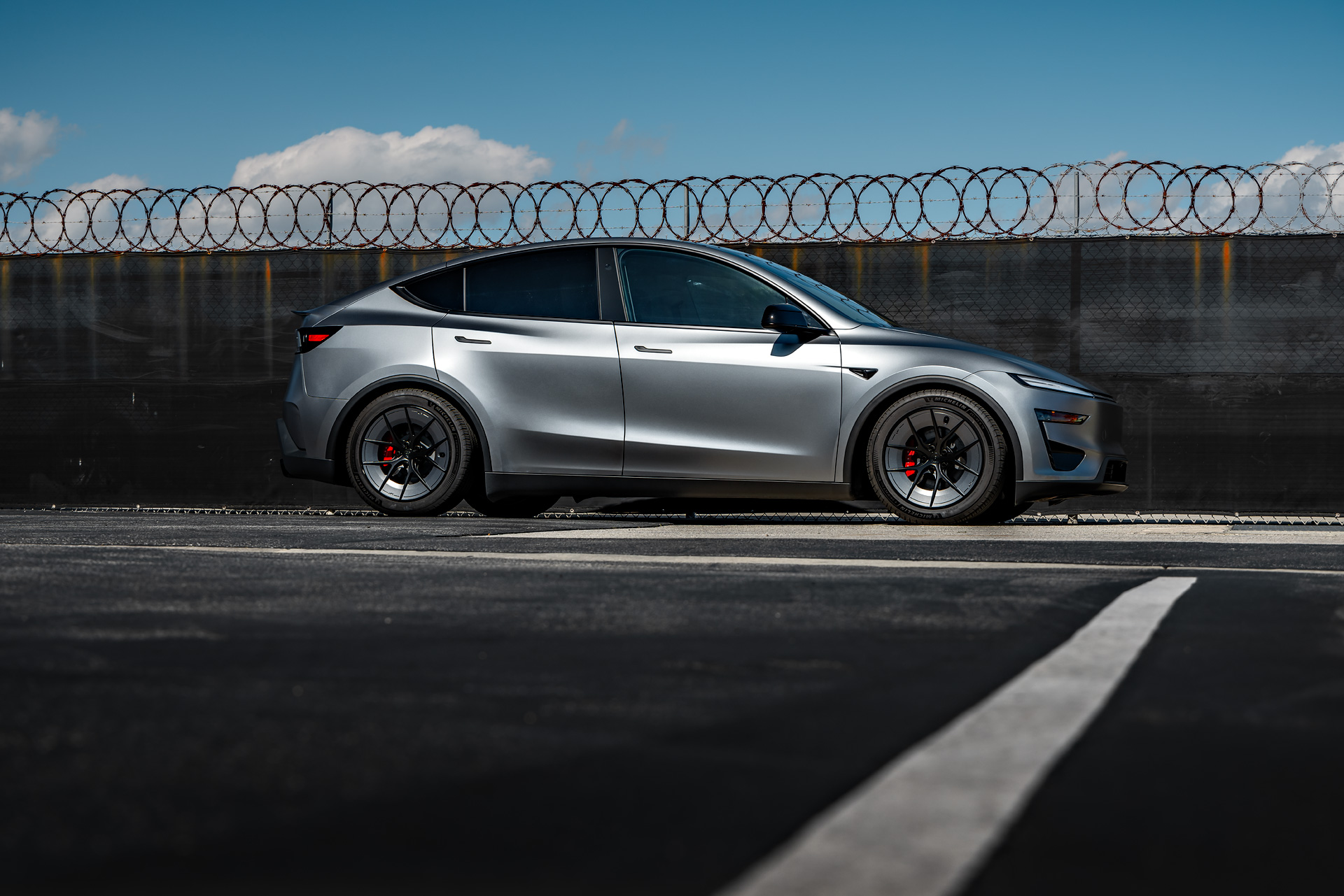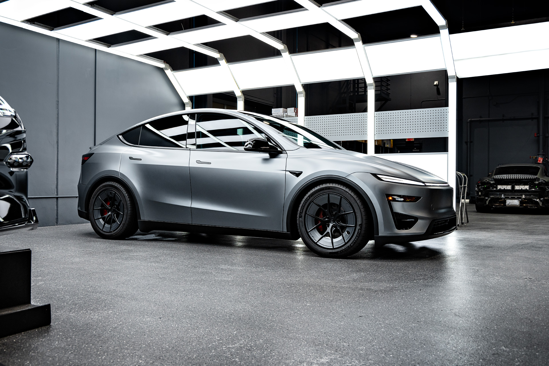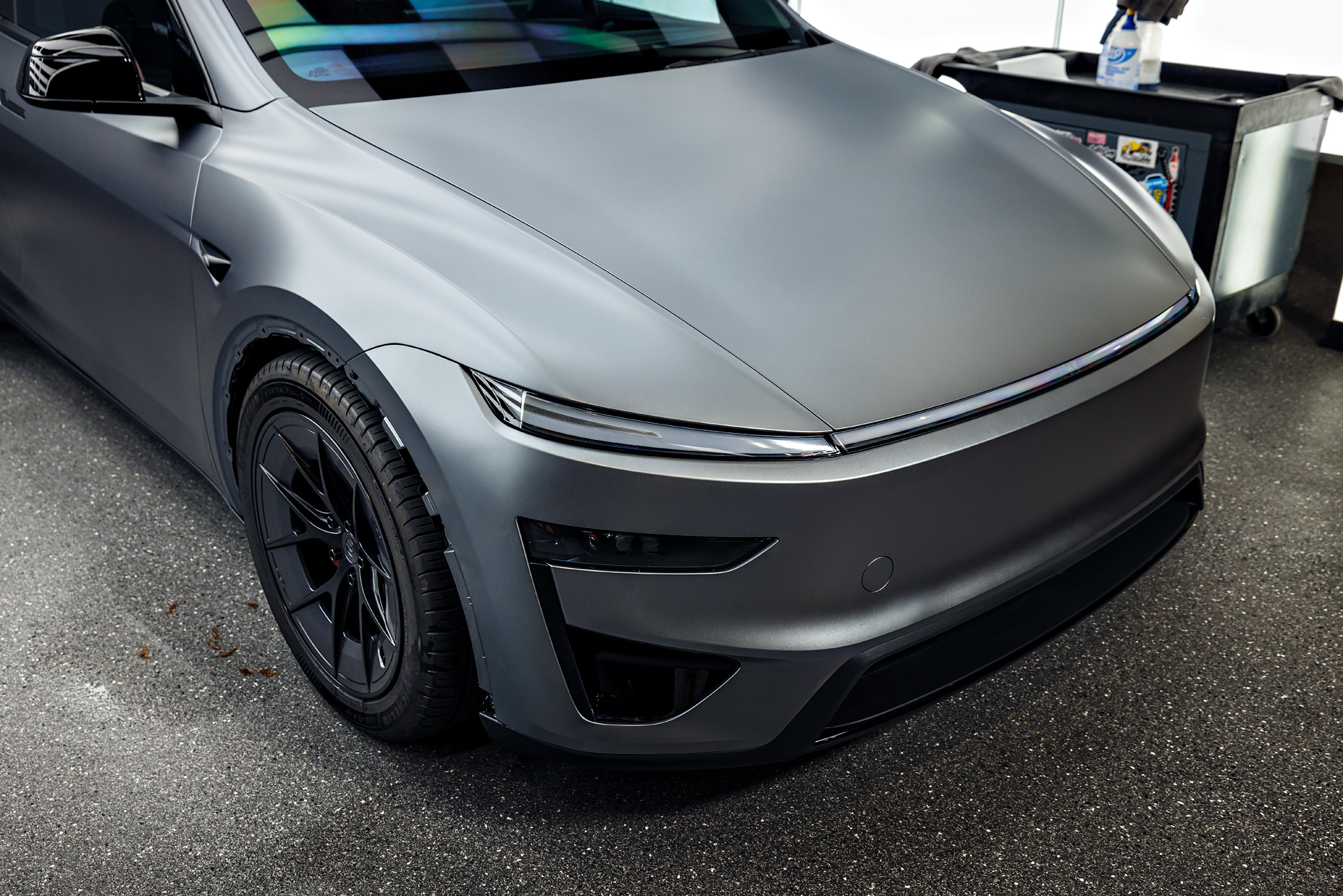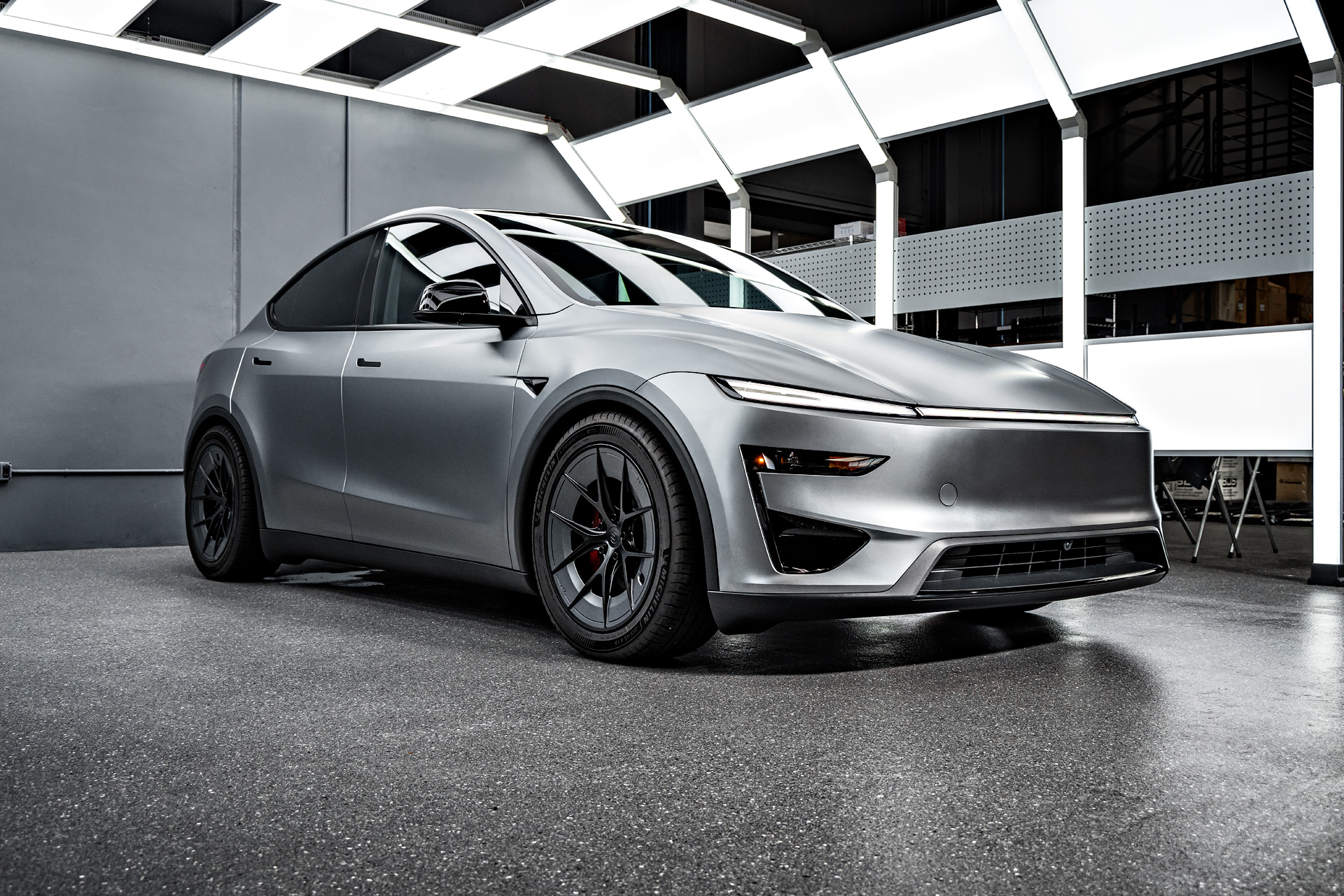 Stealth XPEL PPF Quicksilver Tesla Model Y Juniper Performance on 19-Inch UP Forged UP-RW Wheels