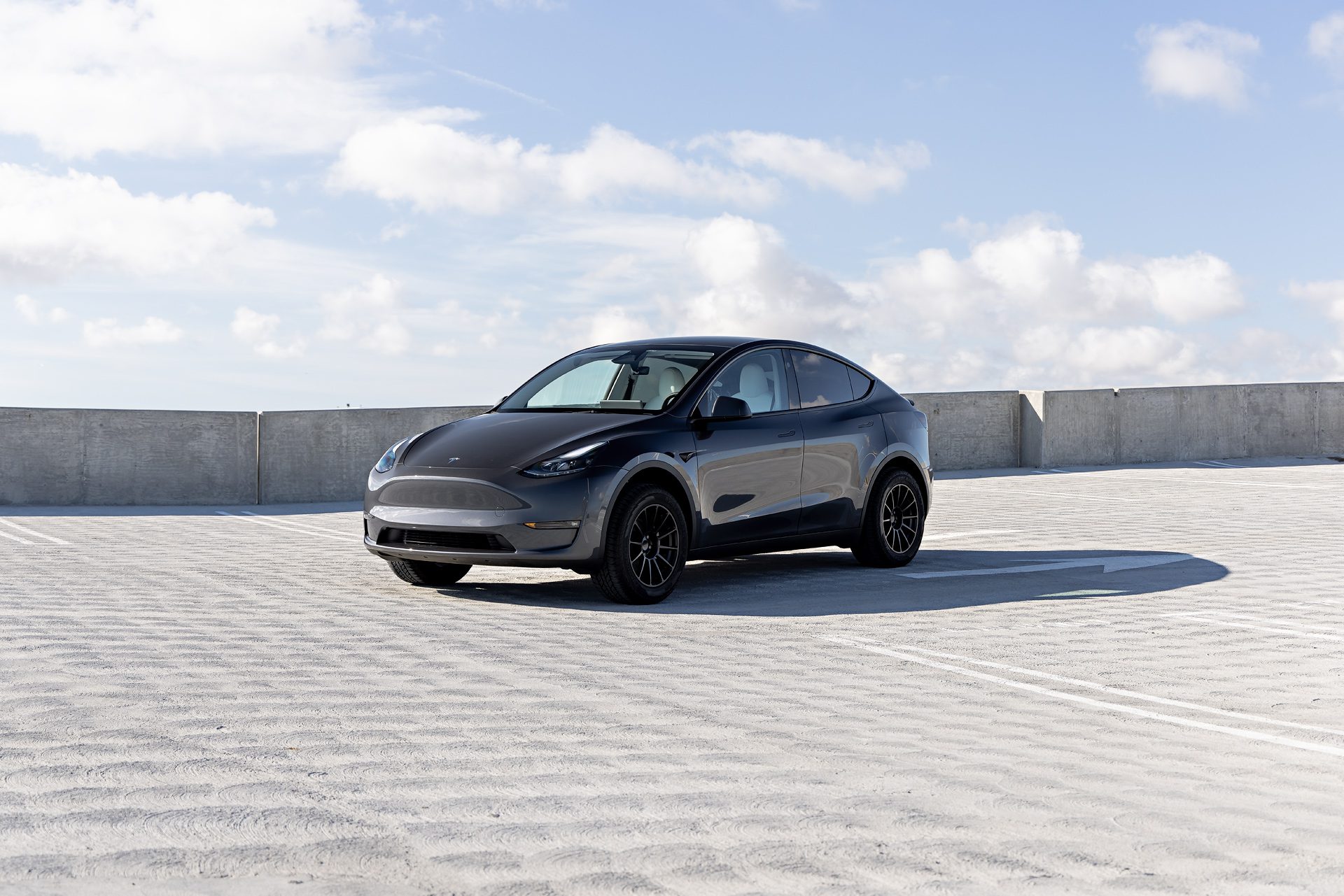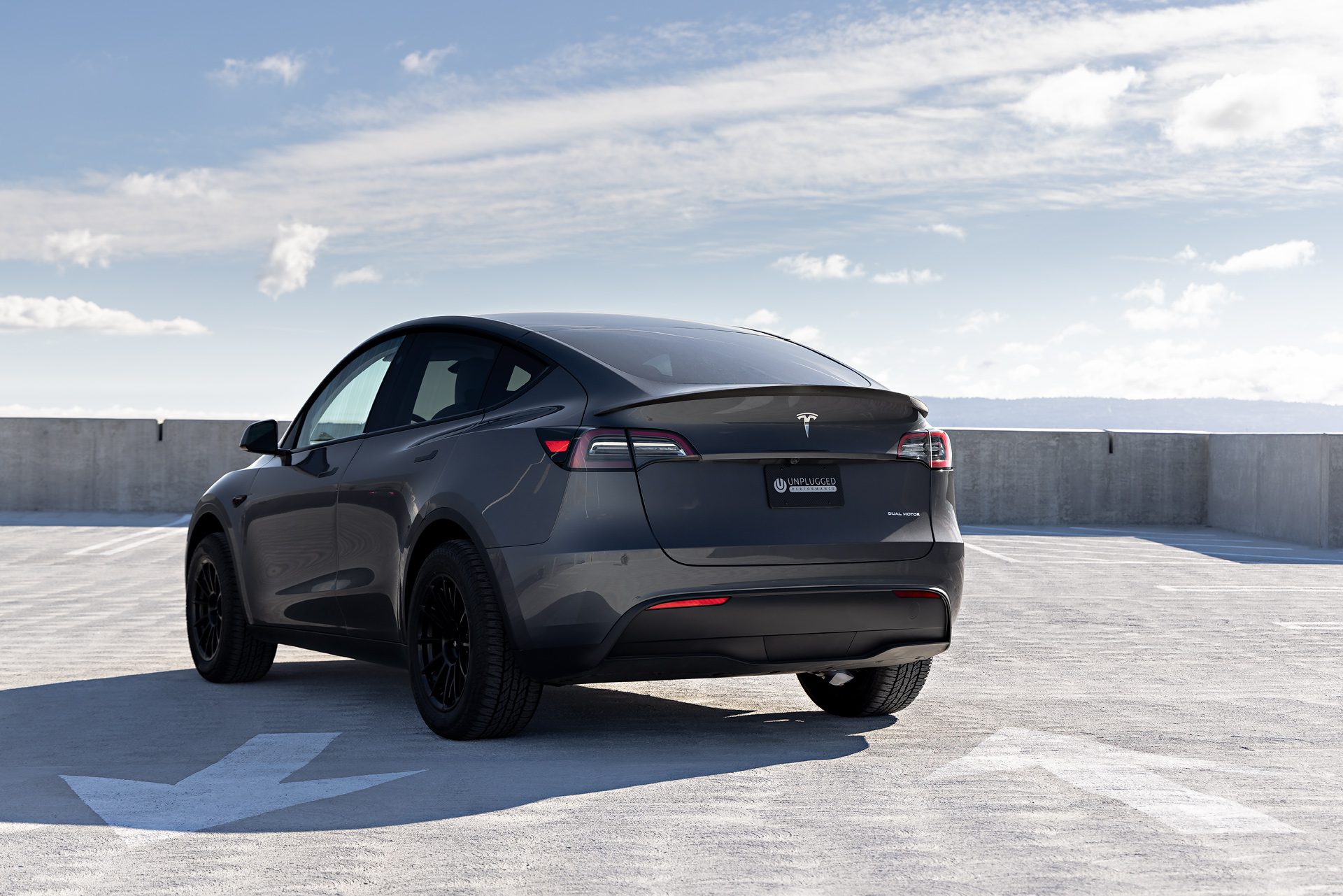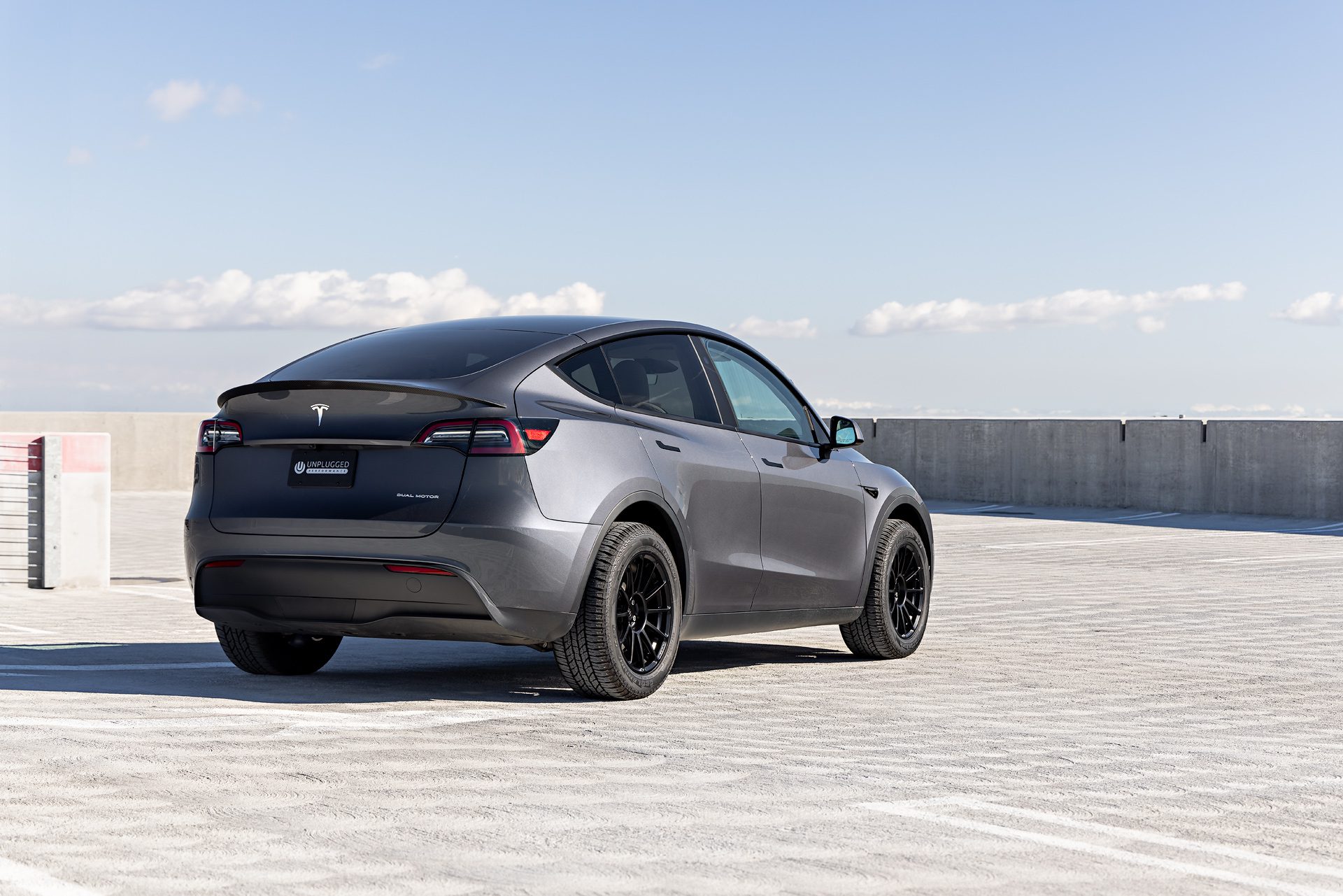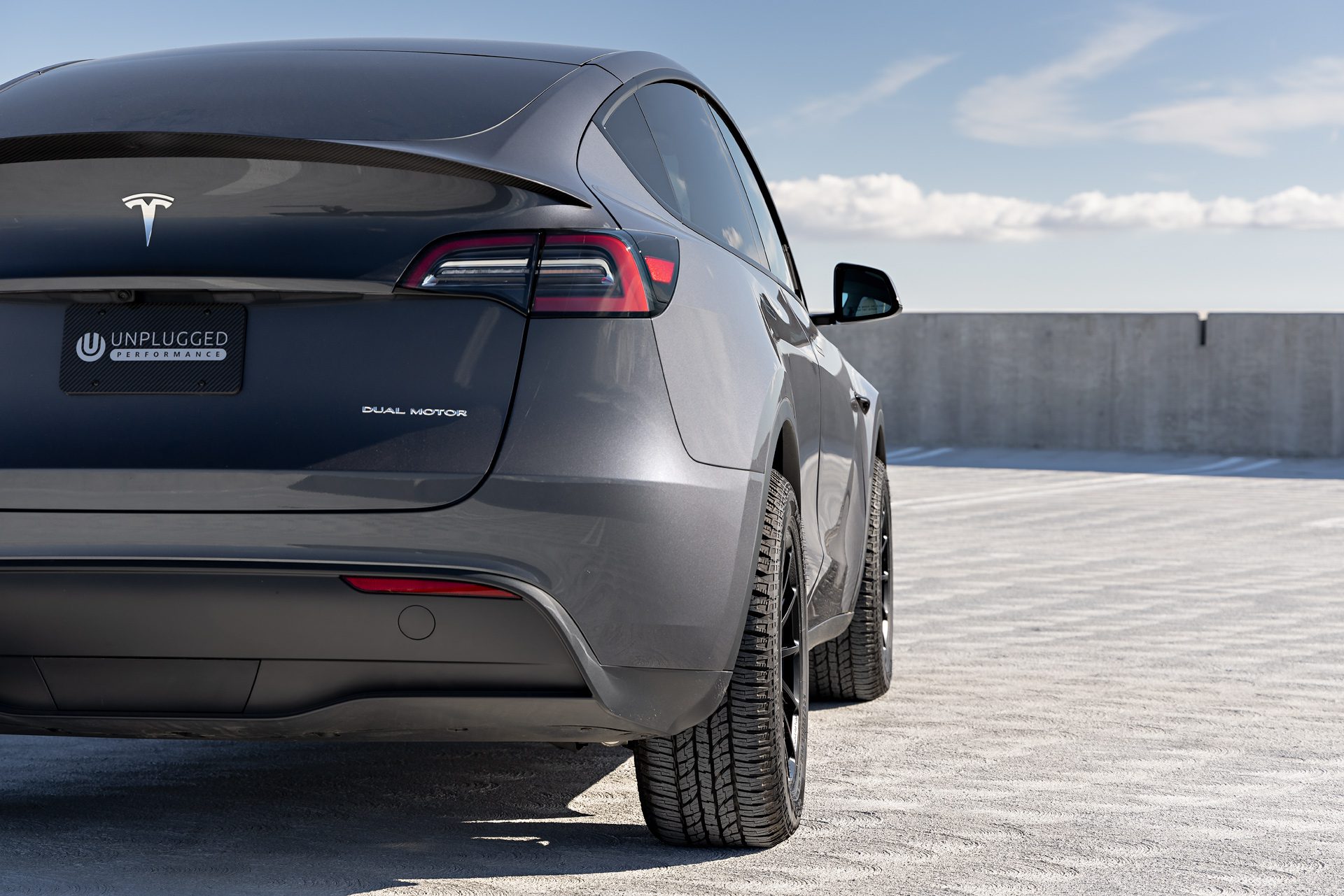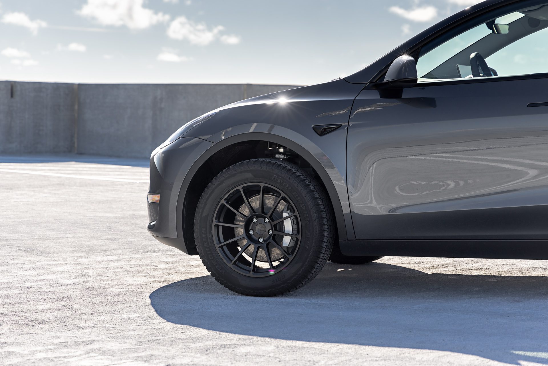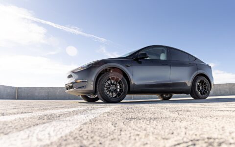 Tesla Model Y – UP-03 Forged Wheels in Satin Black and Dirt and Snow Coilovers