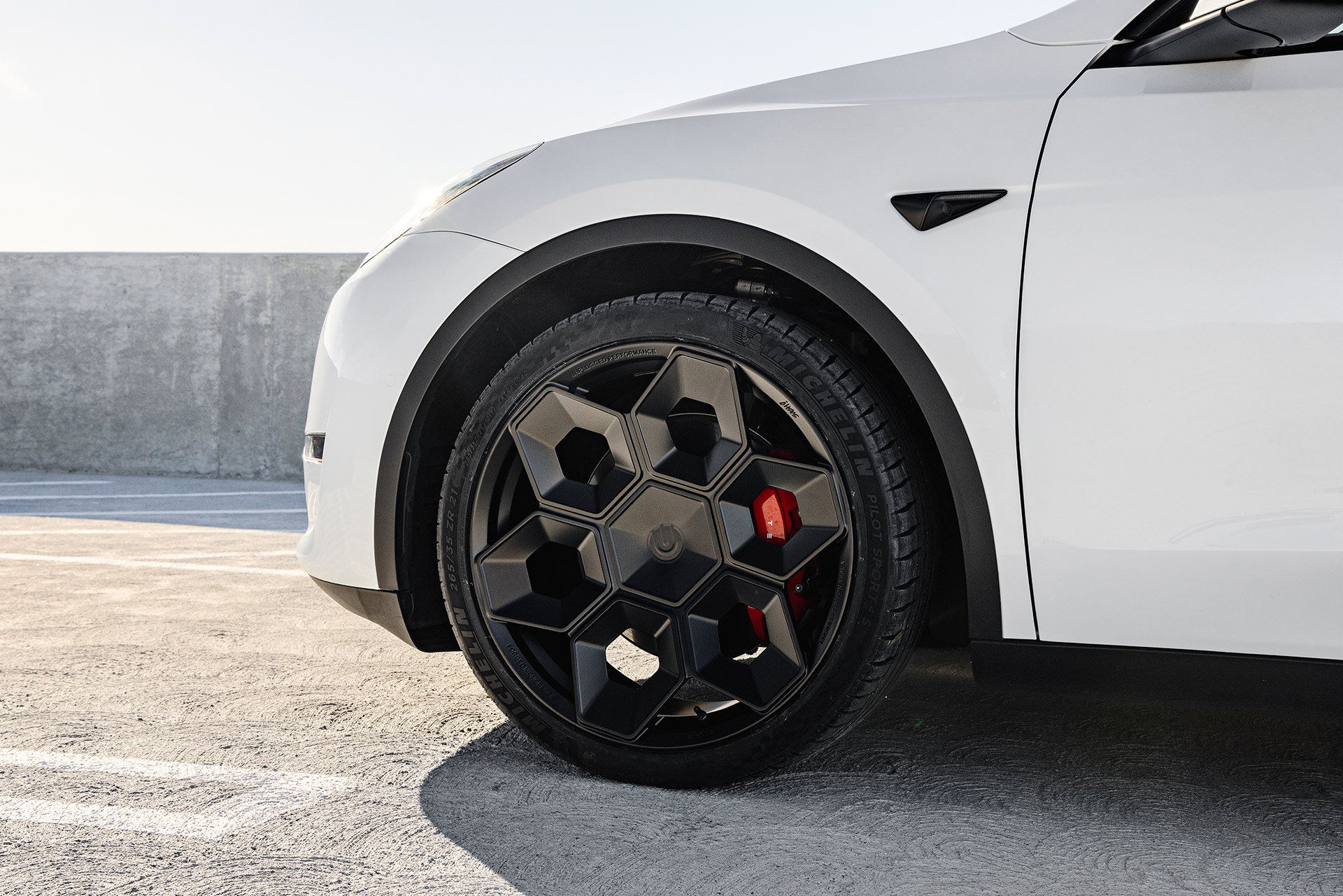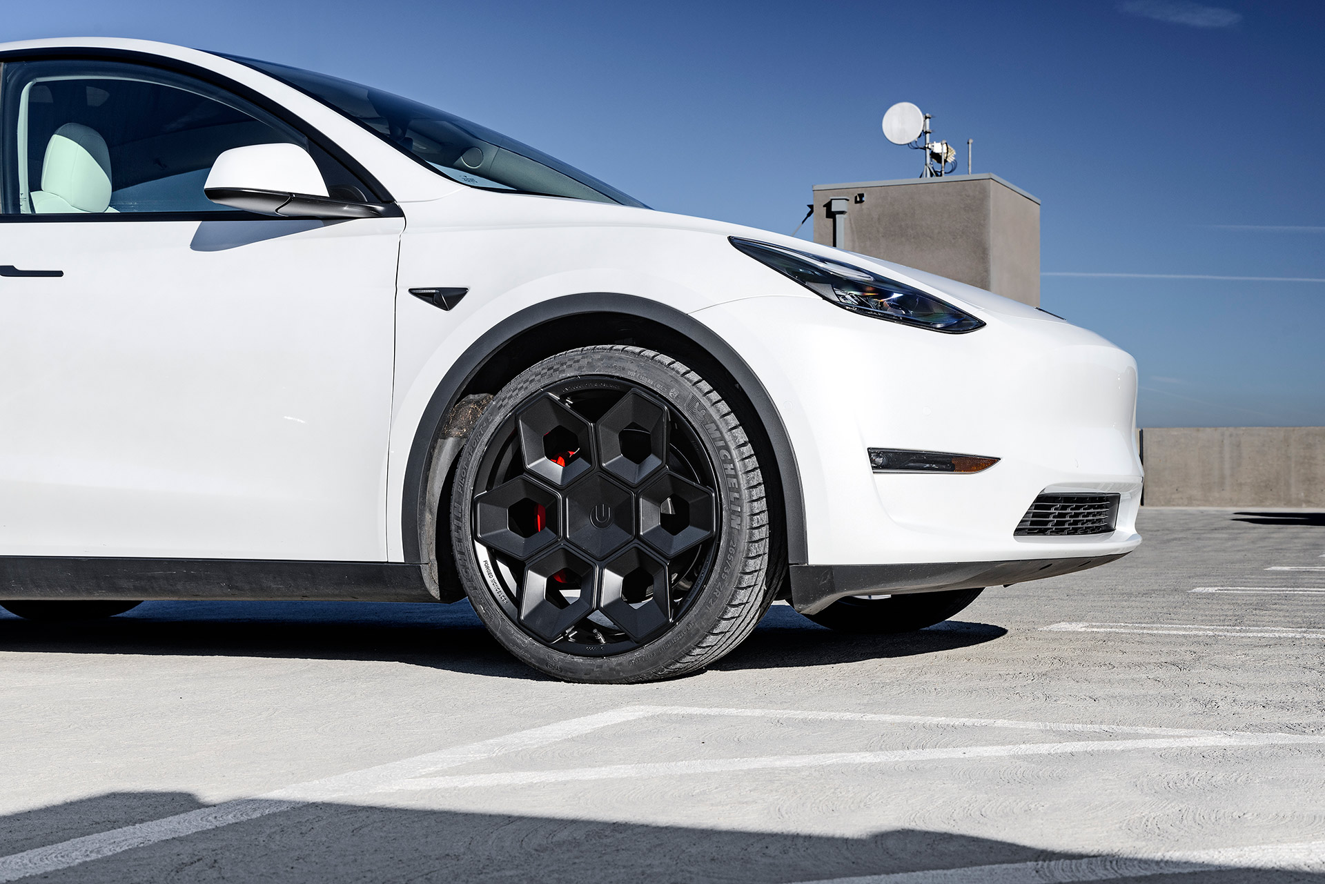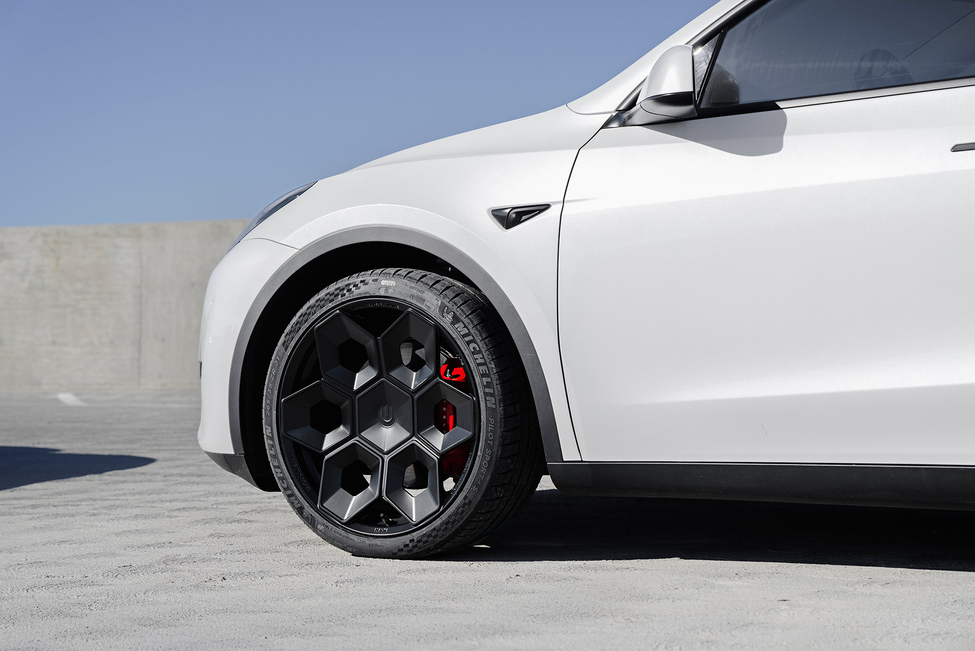 White Tesla Model Y Performance – CYBRHEX Forged Wheels in Satin Black