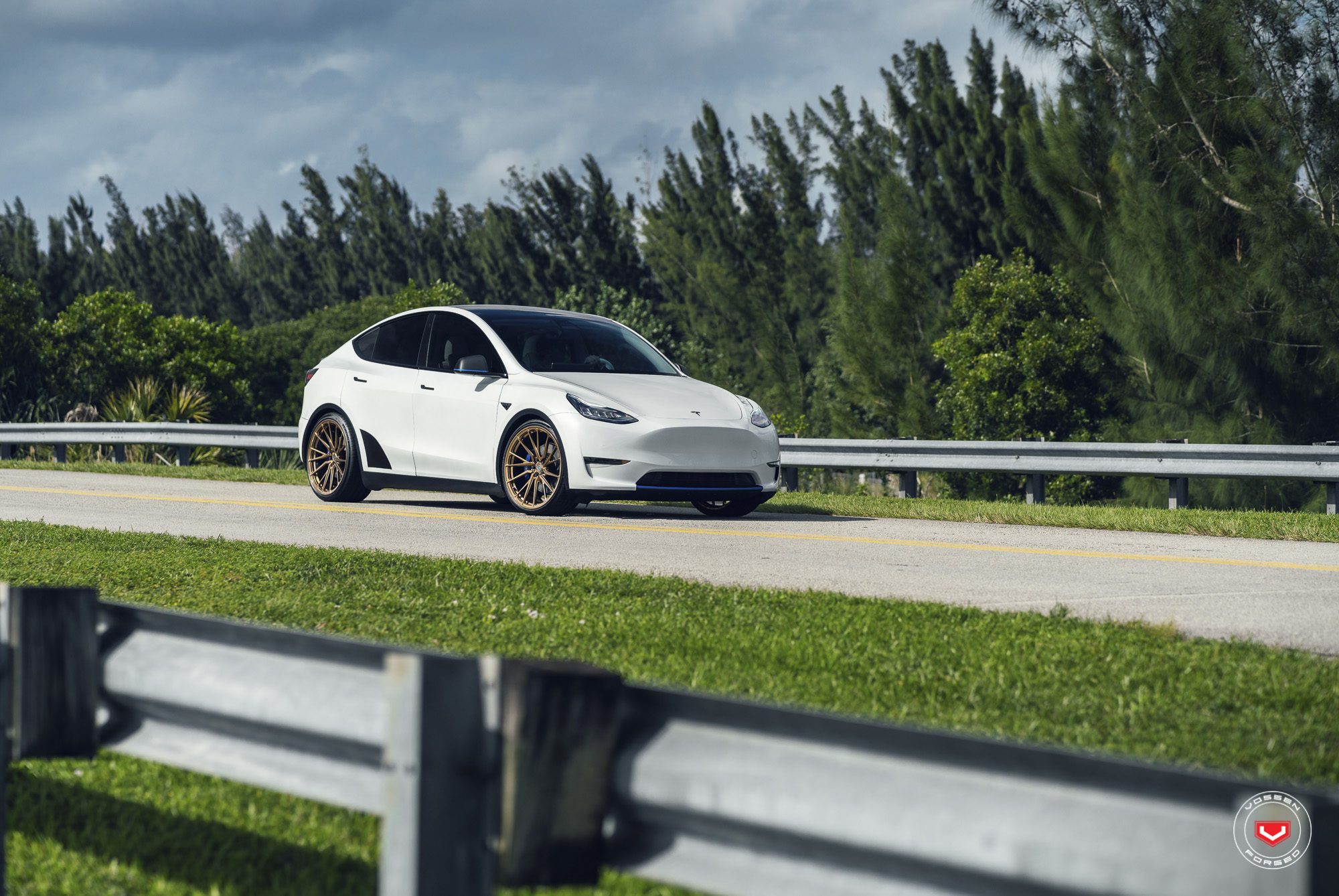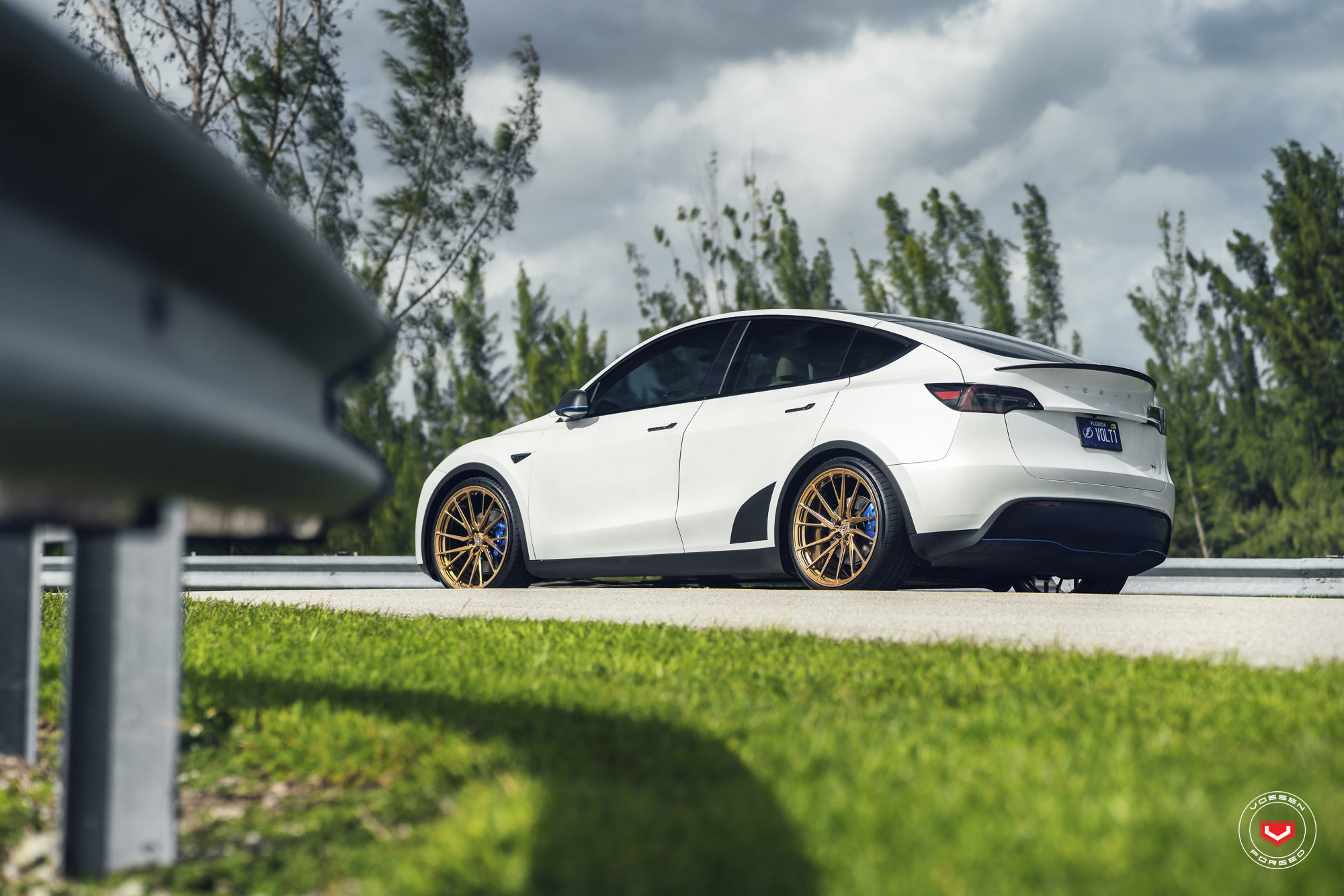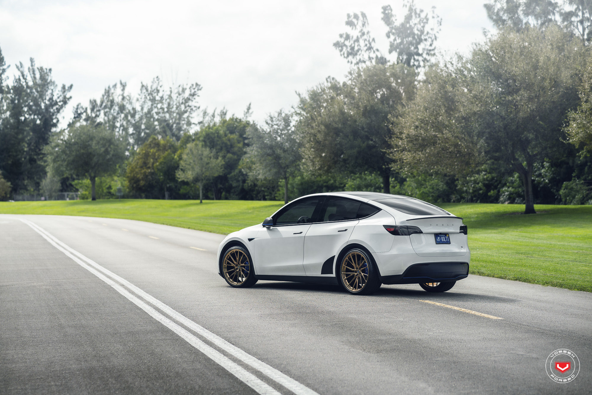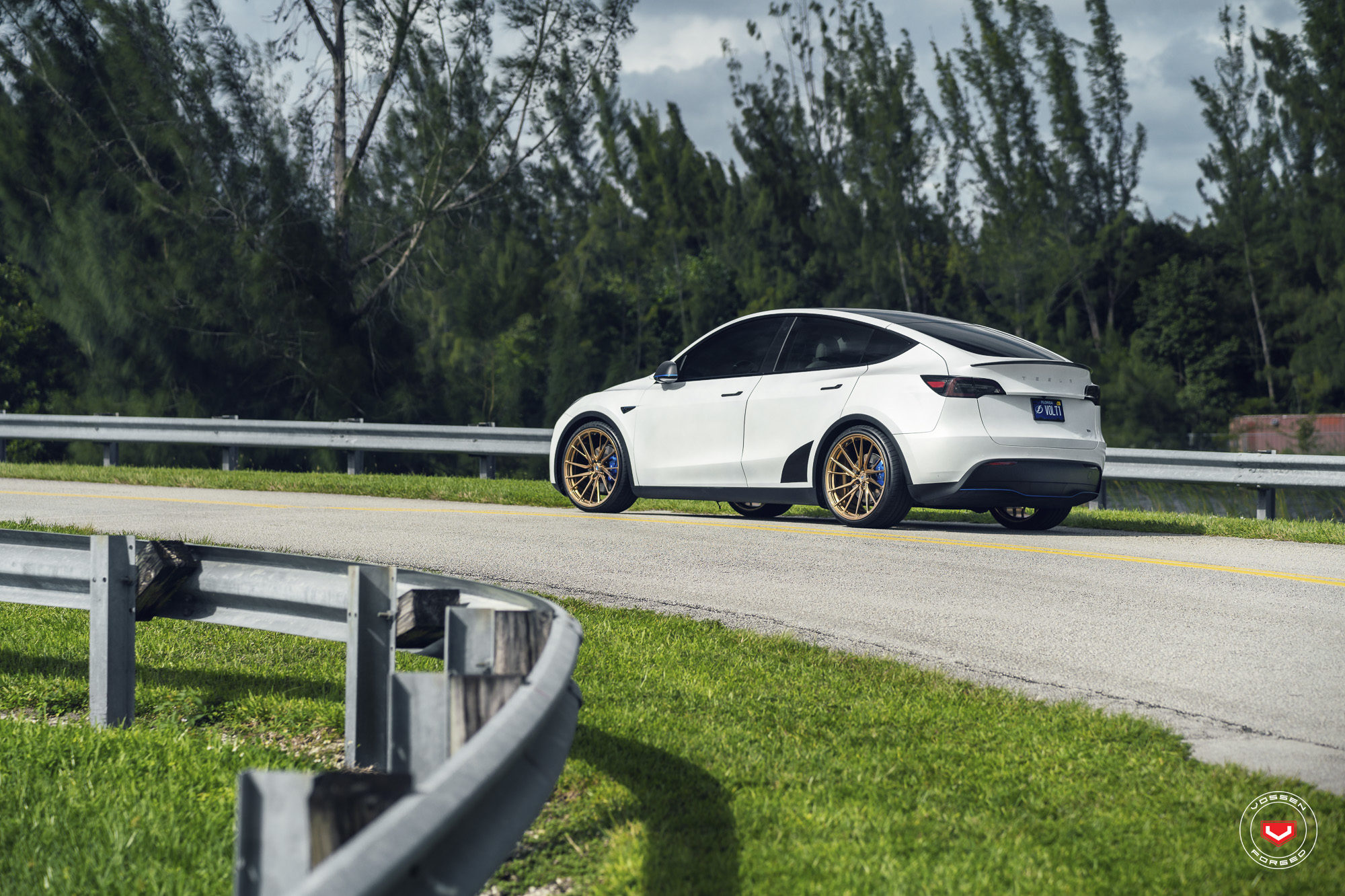 White Tesla Model Y – Vossen M-X4T Wheels in Brickell Bronze