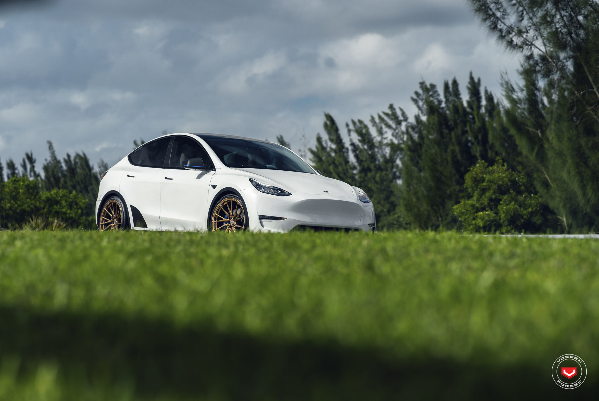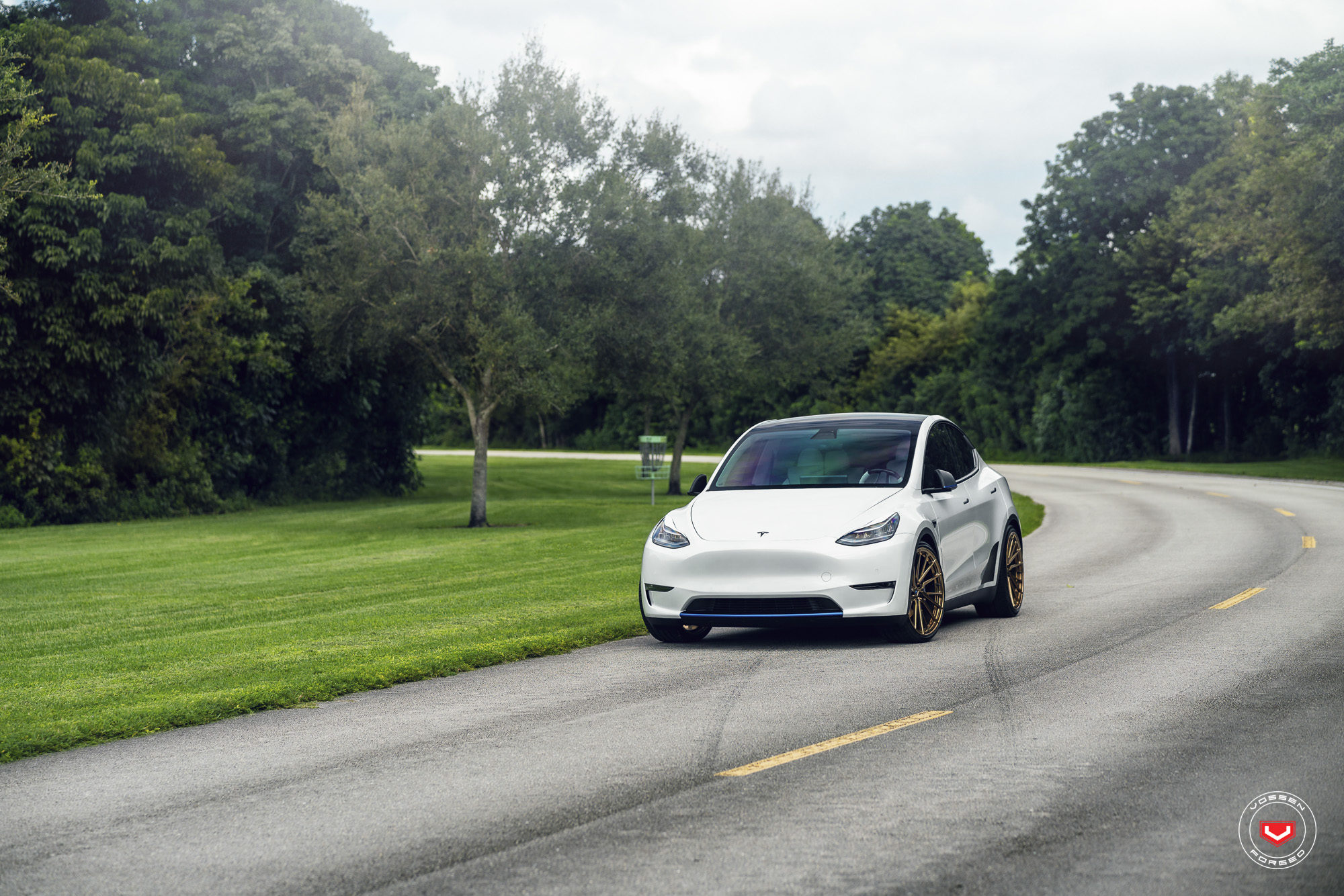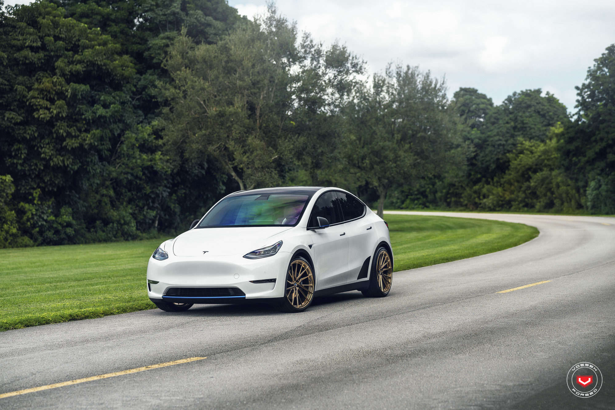 White Tesla Model Y – Vossen M-X4T Wheels in Brickell Bronze