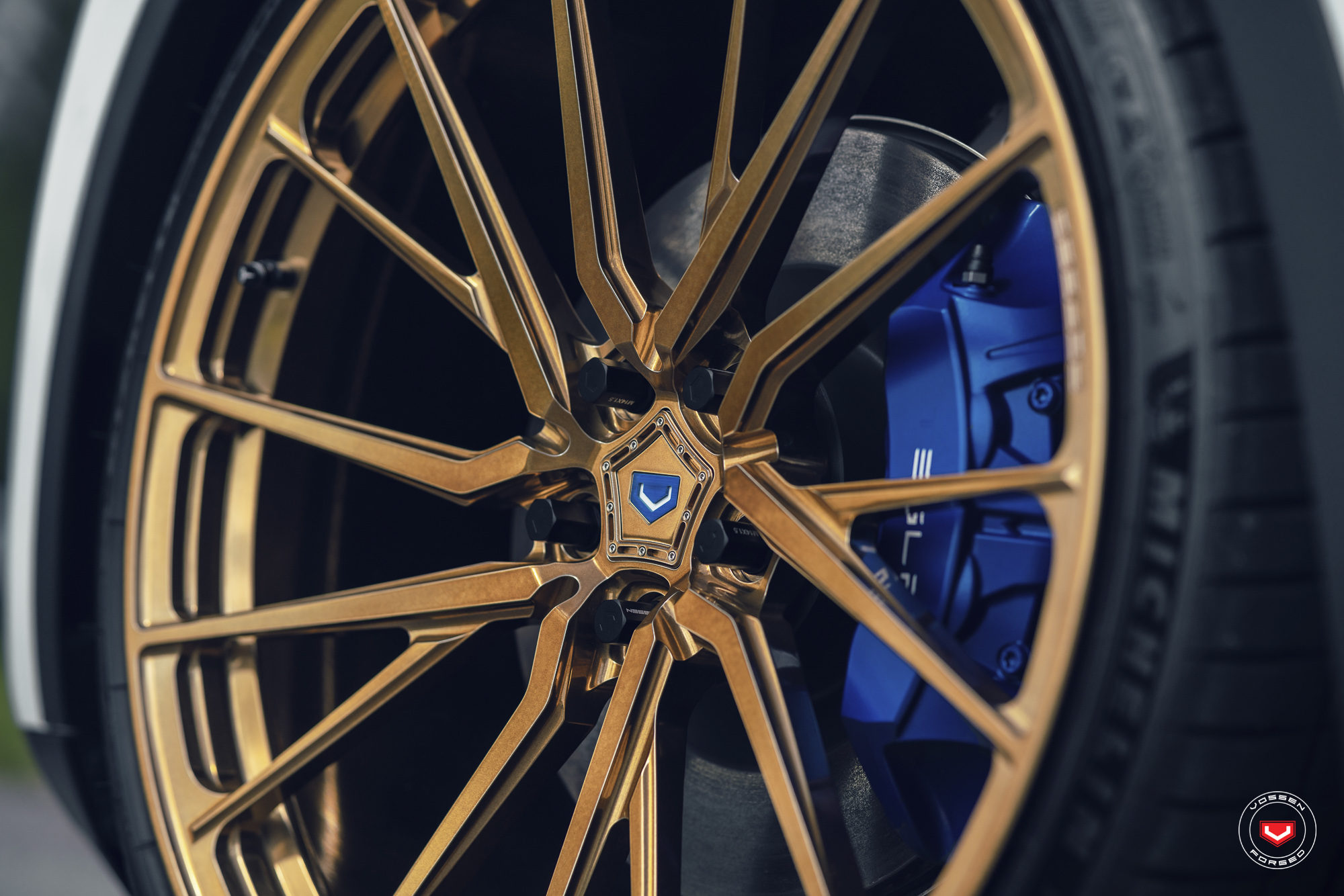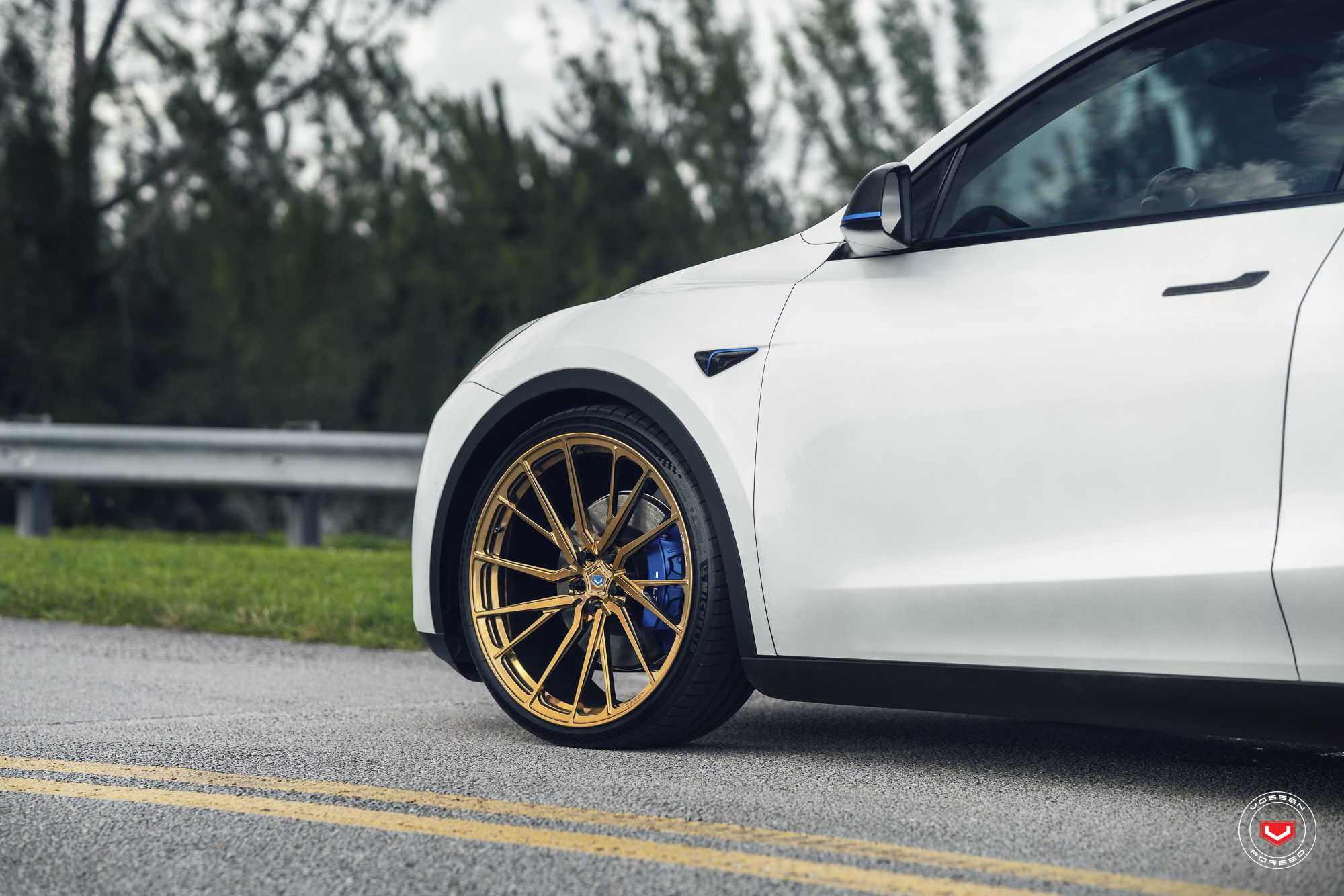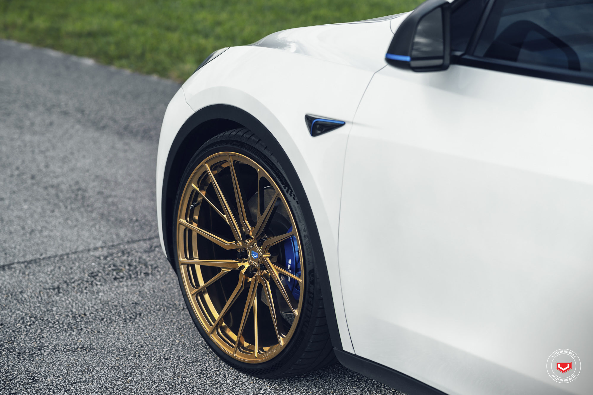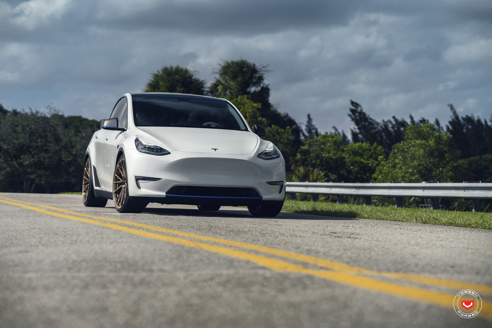 White Tesla Model Y – Vossen M-X4T Wheels in Brickell Bronze