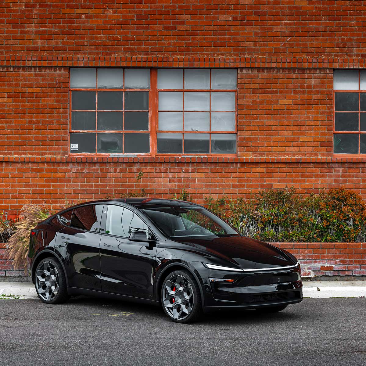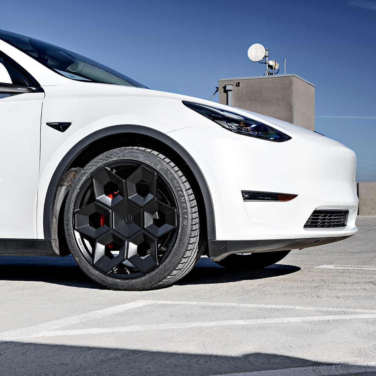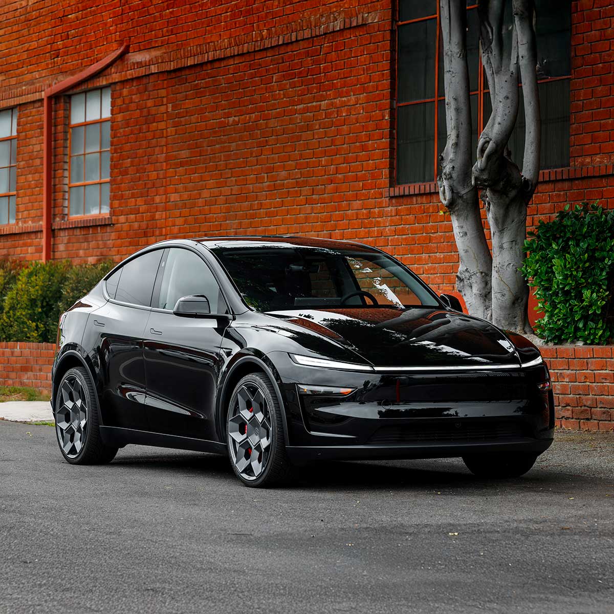 CYBRHEX brings a distinct design language to the Model Y. Created with designer Sasha Selipanov, the wheel’s angular surfacing reads modern and purposeful while the forged 6061-T6 construction delivers real performance gains. Each assembly is engineered around Tesla hardware for a true bolt-on experience, including hub-centric fit, TPMS compatibility, factory lug hardware, and full clearance for Model Y Performance brakes. The wheel is double drilled for cross-platform versatility, yet this package is tuned specifically for Model Y offsets, brake room, and tire sizing.